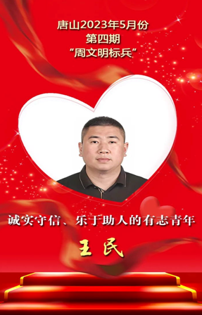 日前,唐山市“文明標(biāo)兵”評選發(fā)布組委會辦公室公布了2023年5月份第四期“周文明標(biāo)兵”名單。他們是:
