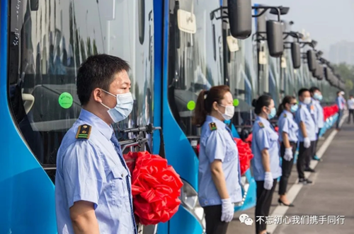 8月11日上午,唐山市新能源公交車上線運營啟動儀式在唐山站公交樞紐舉行,市委常委、常務(wù)副市長付振波,市政府副秘書長、“一港雙城”辦主任任艾泉,市人大城環(huán)委主任王玉升,市城管執(zhí)法局黨組書記、局長冀桂梅,市政協(xié)提案委辦公室主任劉貴臣,市交通運輸局副局長李東興,市城管執(zhí)法局四級調(diào)研員石中波,總公司總經(jīng)理劉東占、黨委書記夏保良出席啟動儀式。在啟動儀式上,市城管執(zhí)法局黨組書記、局長冀桂梅同志致詞,總結(jié)概括近年來唐山公交事業(yè)發(fā)展取得成績,全面介紹了純電動公交車更新?lián)Q代情況,市委常委、常務(wù)副市長付振波同志宣布2020年唐山市新能源公交車正式啟用上線運營。
