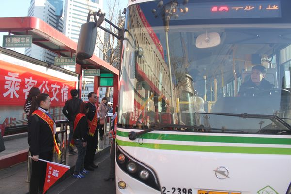 今年是全國(guó)青年文明號(hào)活動(dòng)開(kāi)展20周年。為響應(yīng)團(tuán)市委提出的3月份為“青年文明號(hào)誠(chéng)信示范月”的倡議,總公司團(tuán)委于3月14日開(kāi)展了“青春建功中國(guó)夢(mèng),心系乘客公交情”的主題活動(dòng),圍繞“安全、優(yōu)質(zhì)、高效、公正”等誠(chéng)信內(nèi)涵,開(kāi)展誠(chéng)信示范服務(wù)?;顒?dòng)當(dāng)天,共有總公司所屬各單位團(tuán)總支書(shū)記及青年志愿者近20人參加。志愿者分別在省級(jí)青年文明號(hào)26路途經(jīng)的百貨大樓站點(diǎn)、國(guó)家級(jí)青年文明號(hào)2路途經(jīng)的銀泰百貨站點(diǎn)開(kāi)展志愿服務(wù)活動(dòng),宣傳文明健康出行理念,引導(dǎo)乘客自覺(jué)排隊(duì)、文明禮讓,維護(hù)上下車(chē)秩序,疏導(dǎo)客流,勸阻不文明行為。志愿者們真誠(chéng)溫馨的服務(wù)贏得了周?chē)忻窈统丝偷膹V泛稱贊。通過(guò)這種形式的活動(dòng),不僅發(fā)揮了青年文明號(hào)標(biāo)桿作用,而且通過(guò)示范引領(lǐng)服務(wù),在全公司廣大青年職工中營(yíng)造了立足本職工作崗位、提升服務(wù)水平的良好氛圍。