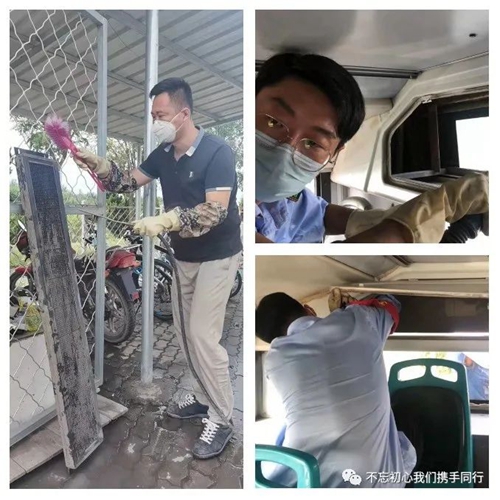 三隊在車輛衛(wèi)生管理方面一直是五公司的標兵,不僅起到了帶頭示范的作用,還是發(fā)現(xiàn)問題、解決問題最多的路隊。衛(wèi)生清理過程中,三隊發(fā)現(xiàn)位于公交車內(nèi)部最后方電子顯示屏是車輛衛(wèi)生區(qū)死角,于是,精益求精的他們在實驗了眾多方法后,發(fā)現(xiàn)了利用小型手槍鉆配合氣泵這個方法很實用。小型手槍鉆起到快速拆卸電子屏的作用,對比扳手、螺絲刀等工具更加節(jié)約時間,氣泵吹出的帶有壓力的氣體則有效解決因電子顯示屏屏面凹凸不平、且有縫隙的衛(wèi)生污垢清理問題。這樣的好處是既避免了用水清理電子設備造成不必要的損壞又能讓公交車的灰塵“釜底抽薪”。另外,針對個別公交車駕駛室配電箱出現(xiàn)爆漆問題,三隊“廢物利用”用廣告紙對其進行粘貼,在節(jié)省資金的同時達到了公交車內(nèi)外整體美化的效果。
