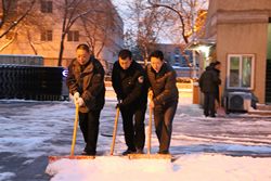 天逐漸放晴,太陽(yáng)初升,這第一場(chǎng)雪的緊張24小時(shí)終于過去,但是并沒有結(jié)束,下午,又有數(shù)百名公交職工走上街頭,清理馬路上的積雪。