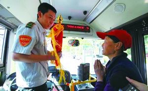 5月5日,趙淑榮來到文化路旁的28路公交車站點,親手將錦旗送給了車上的司機。三年多來,28路公交車司機風(fēng)雨無阻,幫助趙淑榮攙扶她患有腦梗后遺癥的老伴上車、下車,安全地送他們到達目的地。“沒有他們幫助,我和丈夫真沒法出門,真的太感謝這些好心人了。”趙淑榮感激地說。