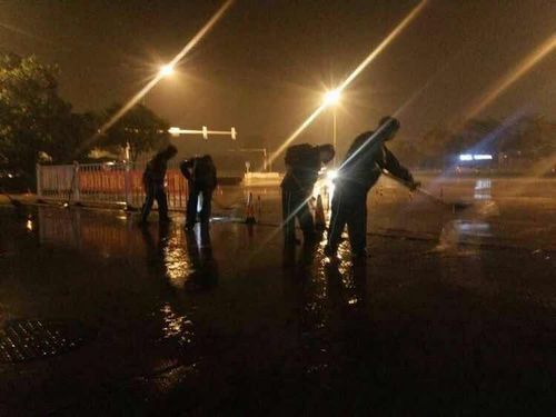 23時43分,很多人已進(jìn)入了夢鄉(xiāng),此時公交場站的工作人員正在清理加油站積水,凌晨雨勢漸弱他們才放心收隊。