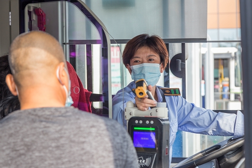 嚴(yán)格落實常態(tài)化疫情防控工作舉措,運營車輛堅持消毒通風(fēng),重點對車廂地板、司機方向盤、車窗開關(guān)、座椅扶手、車內(nèi)欄桿、刷卡機、投幣口等部位進行消殺,加強通風(fēng)換氣,保持空氣流通。公交司乘人員佩戴口罩上崗,同時提醒乘客佩戴口罩乘車,共同打造安全健康的出行環(huán)境,讓乘客安心上車。