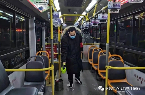 凌晨5:20,等待發(fā)車的我迎來幾張陌生面孔,莫不是新入職的駕駛員?原來他們暫時不能承擔駕駛員的工作,但是他們加入了防控的隊伍。為準備上崗的駕駛員測量體溫,給運營車輛在出車前、收車后集中消殺通風,針對乘客易接觸的投幣箱、扶手、座椅等部位重點消毒,嚴格執(zhí)行一趟一通風、一趟一消殺。老搭檔告訴我,只有接受消毒噴灑的洗禮,才能躋身抗擊疫情的行列。“來吧,我身經(jīng)百戰(zhàn),怎會退縮!”一切準備完畢,出發(fā)。
