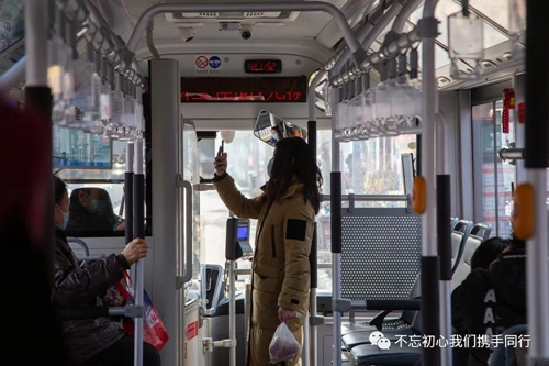 我察覺大家逐漸習慣乘公交戴口罩、上車自動伸手讓駕駛員檢測體溫、主動掃碼,但也難免出現(xiàn)大意的時候。有次一個小伙子在車上可能感覺悶了,隨手拉下口罩,被我洞察敏銳的搭檔從后視鏡一眼瞥見,馬上提醒他戴好口罩。